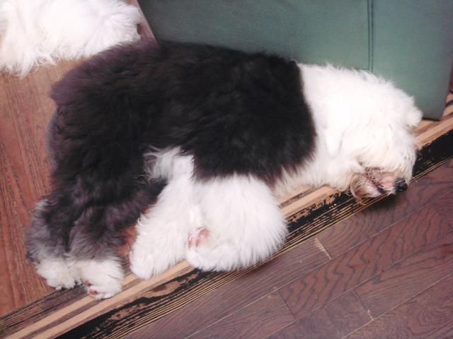 シャンプー後の綺麗なワン達は気持ちがいいが、ミルクの口元は相変わらず立派である・・・・・・・・・・・?★ ★ ★