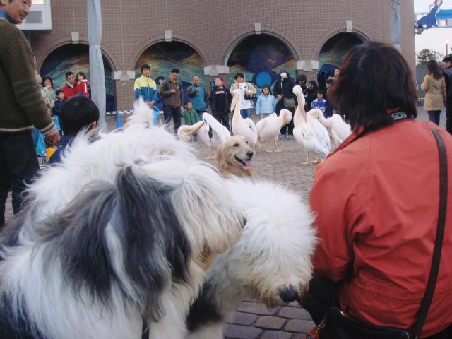 大きなペリカンの行進もなかなか迫力があり、ちゃんと飼育員さんに慣れていて揃って歩く姿も可愛い~!