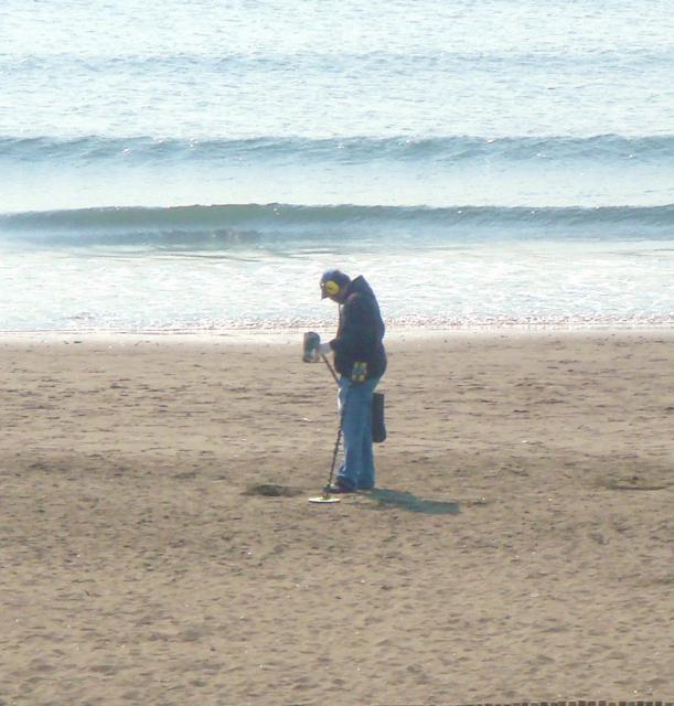 金属探知機で反応がある場所場所を掘り返しては確認していたが~いったい何を?????? 今日は珍しく場所を変えて西浜での捜査のようだ~(笑)