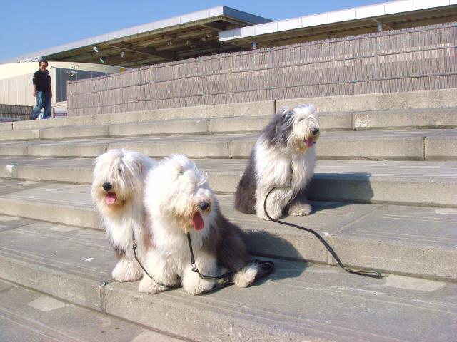 今日は洗いたてで汚したくない紅葉(笑)と桃太郎は自宅にいるお母さんにまかせ、実留紅・最作・夢眠の3ワンをつれて会社へ・・・・・