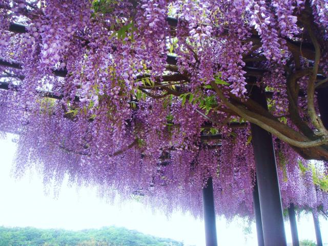 GWの真っ只中、我が家は何時も通りのお休みしかなく、その日曜日も混んでいると,どこにも出かける気もおきず、自宅近辺の散歩だけ・・・ 丁度、藤の花が見ごろ近所の公園や遊歩道にも藤棚が所々に有り、ワン達を分けて散歩・・・・・。