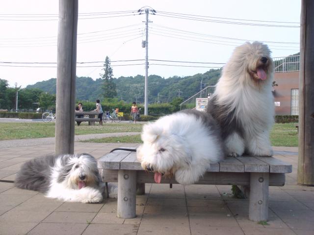 急に曇って涼しい風で、親水公園の散歩の気持ちよく、朝からずっと家の中で待機していたワン達をたっぷり歩かせる事が出来た。 途中パティ家に連絡を入れ久しぶりに一緒の散歩を・・・パティ家は親水公園から10分と掛からない~ これだけ昼間が暑いと親水公園の人も少なく5時過ぎの公園はゆったりと涼しい散歩が・・・♪