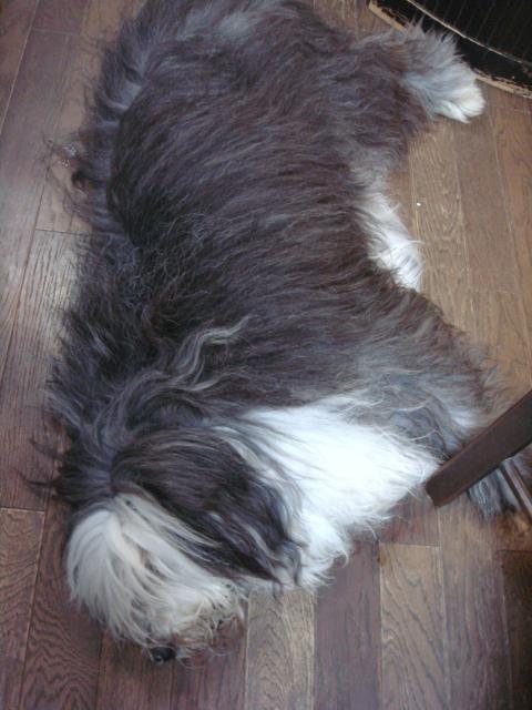 散歩から戻ると、涼しいエアコンの下で涼んでいるワン達~ 早朝の散歩の清々しさと比べるとぐっしょりと汗だくになってしまう夜の散歩・・・仕事を終えワン達の散歩を何回もするとチョット疲れてしまうが、夜だから気兼ねなく