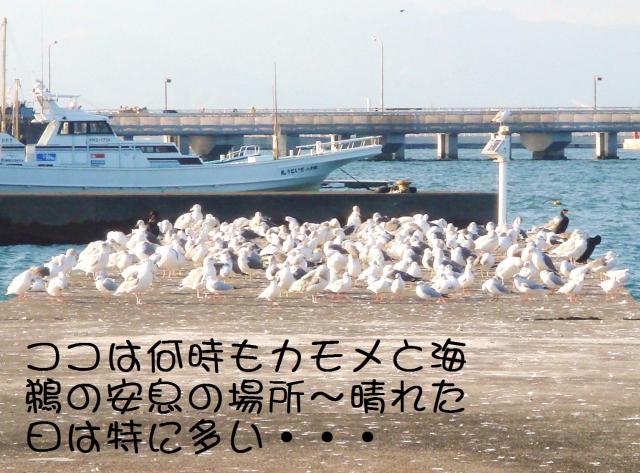 dolphin.gifase.gifdsc00128.JPG    このカモメの大群の中に黒く写っているのが海鵜で何もこんな中に入らなくてもいいのにと・・・  肩を寄せ合いながらも一緒に仲良く休憩しながら、暖かい日差しの中羽根を乾かしているのかなぁ~?dsc00116.JPG