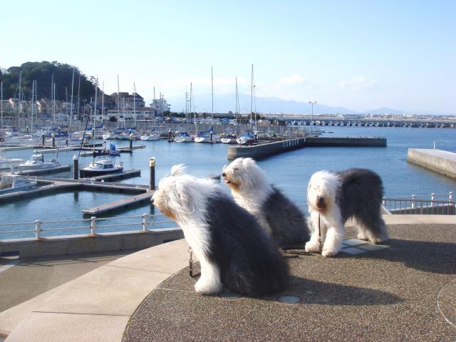 オヤジが掃除をしている間、ワン達はベランダに自由にさせていたが、掃除を見ているだけでつまらなそうにずっと日陰で寝転んでいる。 ワン達を少し遅れた午後の散歩で久し振りに江ノ島内のヨットハーバーのプロムナードまで~