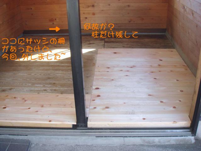 完成~♪昼過ぎに工事完了~丁度入り口のサッシを外してあるので~そのままでいいよガラスの掃除をするから。と言って~大工さんが帰ってから、さあサッシの掃除をと運ぼうと思ったら・・・・・・・・マジ”『重たい!』////////// なんとか水道の近くまで運び綺麗に洗って、さあサッシを枠にはめようと持ち上げたが重過ぎてなかなか旨く入らない~