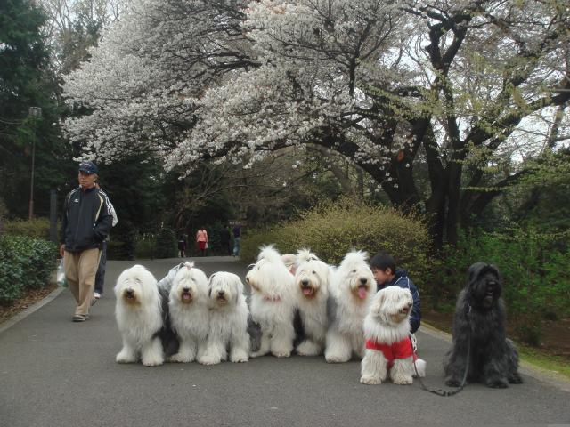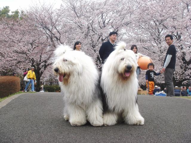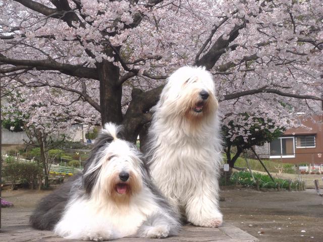 ワン達も周りでお花見~
