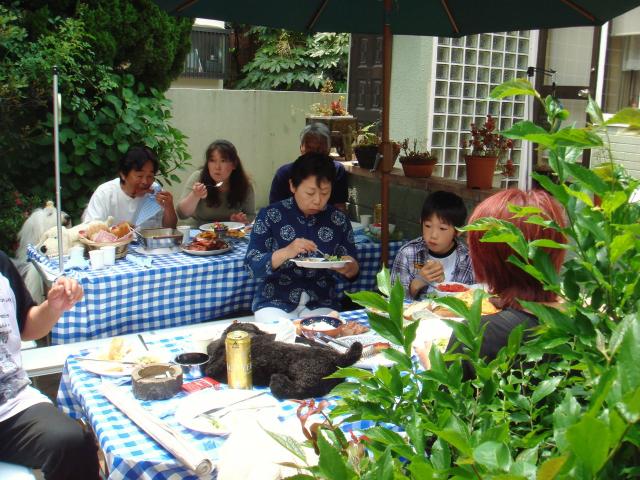 ゴールデンウィーク真っ只中の江ノ島海岸は昨日も凄い人・人・人・・・・ そんな中、日曜はドンファン家で、まったりとした~わいわいブランチを~♪ 久し振りのアンジーちゃんもまだまだ元気で、家の桃太郎より元気なくらいである・・・ アンジーちゃんも歳を聞かなければ絶対に解らないオールドの特典か、何歳になっても可愛く、さすがに子犬とは思わないだろうが可愛さはずっといつまでも続く・・・♪ ドンファン家のお庭はワン達の為に足が汚れない様にタイル調に犬走りがうってありしかも広い~♪ ガーデンパーティーには最適な雰囲気で羨ましい限りだ・・・