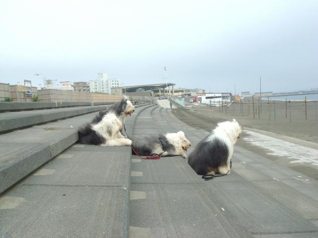 一昨日は前の日に散歩できなかった分、沢山歩こうと・・・ 幸いうす曇で風が強いせいか暑さはこの時期にしては涼しいほどで、東浜から西浜へと・・・途中の海の家で、今年”ティアラパパが手懸けているお店で遊びに来ていたティアラとティアラママに遭遇~♪ 集合写真と一緒に散歩を~まだプレオープン中だが勿論”ワンもOK!
