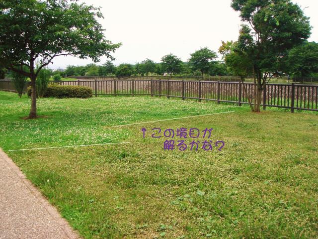 シロツメ草が生えてしまうのは公園を美しく管理する為には、止む終えないのだろうけど、ワン連れにはチョット(かなり!)嫌な事だ・・・・ 手前側が多分?~除草剤のせいで枯れかかっている。 一日でこんなに効果が現われるって怖いと思うし・・・