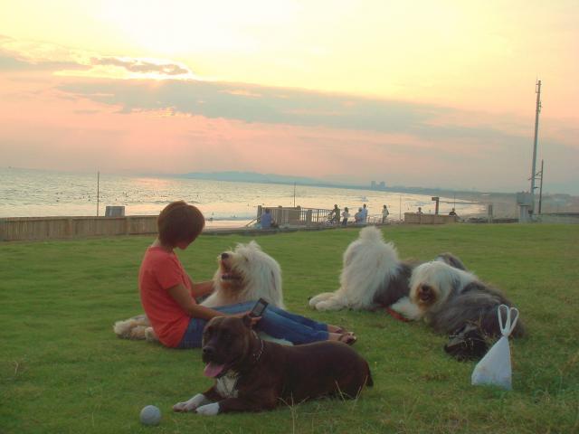 一昨日も夕方まで暑く、遅めの散歩でティアラちゃんと久し振りに湘南海岸公園の芝生でまったりと~♪