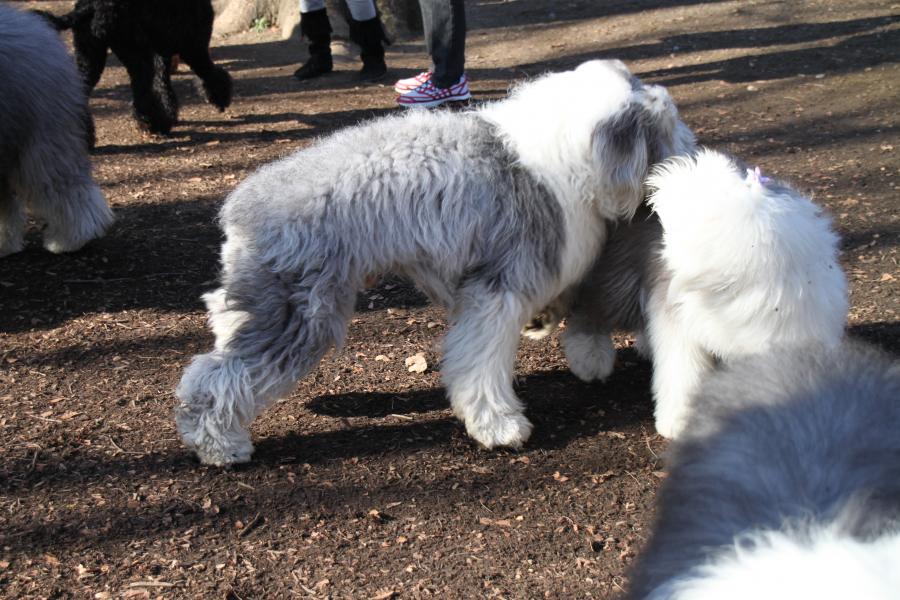 一枚脱いで少し身軽になり、ワン達を車かえら外に出し駐車場の一周していると、遠くにオールドが?? そう、今日は初めてお会いする4歳になるコパン君と言うOESが初参加・・・きっとそうだろうと話しかけると、やっぱりコパン君…写真でしか見たことがなかったが、何と無く分かる。