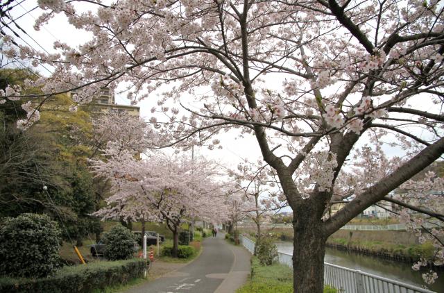 自宅前のこの遊歩道も桜の時期になると歩く人達が急に増え、普段はジョギングの人くらいしか居ないこの親水公園と続く桜並木も一時期だけ賑やかになる。