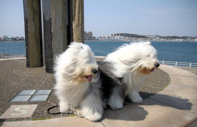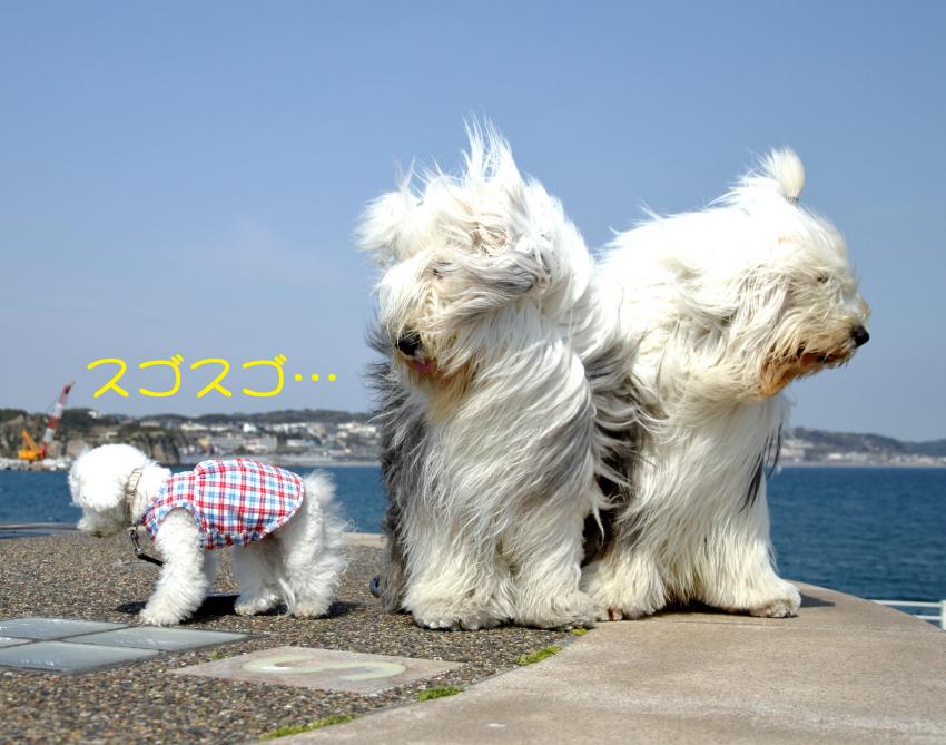 今日は実留紅と紅葉のシャンプーで最作・夢眠の2ワンの楽な散歩である。 天気は素晴らしいし少し暑い分、程良く乾いた風も出てなかなか気持ちがいい~~♪江の島に渡る弁天橋も、晴れると人・人・人のはずが天気の割には人が少なくのんびりと歩けたし、連休前でみんな控えているのかな~?