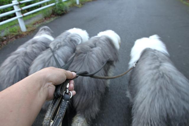 hanaoes1.gifやっと今朝は晴れ、少し湿度は高そうだが適当に雲に隠れた太陽のお陰で涼しく気持ちのいい朝の散歩である。  少し遅れて来たパティー家とも途中で合流し~♪img_1309.jpg ari_1.gif昨日の雨で会社からの帰りにうっかりと事務所にりードを置き忘れてしまったオヤジ!・・・今朝は緊急に仮の首輪を探し早朝の散歩に出たが~2本が丸皮のリードで、2本が丸紐のリードだとなんかとても扱い難い・・・・・      kaminari.gif以前はこ紐のリードがとても扱いやすく気にいっており、大量にまとめて購入し4ワンともこのリードをず~っと使用していたが、一旦’丸皮のリードに慣れてしまうと、不思議と前はとても良かった物が使い難く感じてしまう・・・・img_1317.jpgimg_1315.jpgimg_1328.jpgimg_1319.jpg star.gifリードの長さも丸皮のリードの方が少し短かいし、2種類の違った手に伝わる感覚のせいか?チョットした事でもかなり使い勝手が悪く、何頭も引く時は同じ物じゃあないと~!  ………とつくづく痛感した今朝の散歩である・・・。