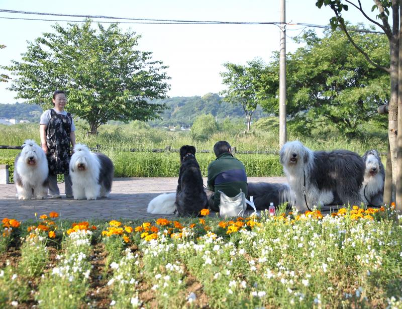実留紅の姿が無く、なとなくか淋しいが、温度も低く気持ちのいい早朝の散歩で、実留紅を除いたフルメンバーの散歩を~~♪