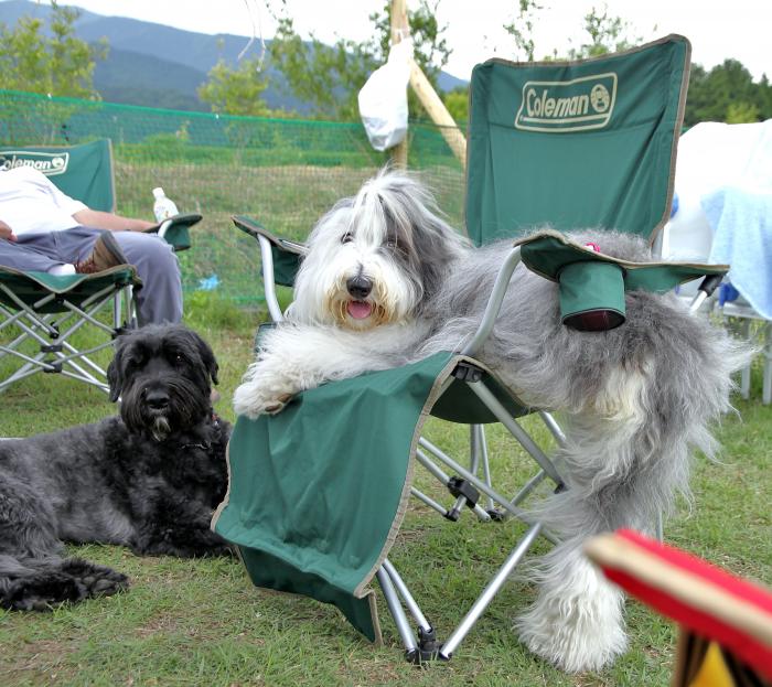 午前中は兎に角”暑く、走りまわるのは若者だけで、特に一番若いαは跳び廻っていたが、流石に暑いらしく~銀&風の家の仔になっていた~(笑)017.JPGモコモコで管理がいいねぇ~♪   star.gifパティ―家と銀&風家が揃うとランチは何時も度肝を抜かれる~(笑) 今回は冷やし中華と素麺で、とてもドックランでの食事とは思えない~(笑)  kaminari.gifしかもこのドックランは直火以外はすべてOK!~♪ なのも他のドックランではまずあり得ない事が可能なのが嬉しい~!