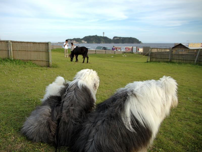 昨日の夕方の散歩は日差しは強いものの、湿気も少なく風もあり、今朝の散歩よりずっと涼しい散歩で、海の日”の賑わう海岸の人混みを避けながらかき分け~(笑)西浜の知人がやっている海の家の前まで歩くと、例年恒例のポニーが今年は一頭!~公園の草を美味しそうに食べていた・・・![]()