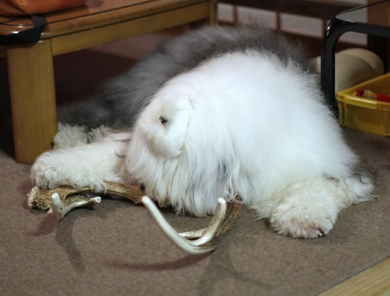 最近!夢眠の口周りが不思議な事に綺麗だ?子供の頃は兎に角”何時でもビシャビシャの口周りで~年中、真っ黒! あのよだれダラダラの実留紅以上によだれがひどい奴だったのだけど何故か最近はよだれも少なく?口周りの白いコートも黒くはならず、多少黄色くはなってはいるもののとても綺麗である。![]()