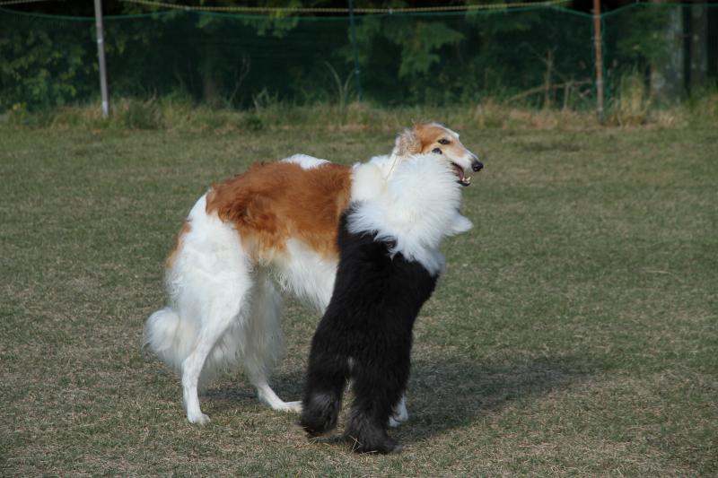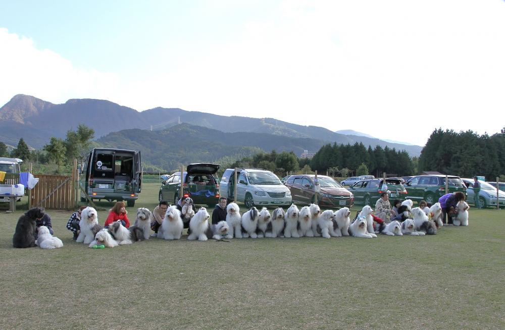 全員揃う事の無かった集合写真だが、オールド・PON・レオンベルガー・ボルゾイ・ベアディー・MIX・アフガン・バーニーズ・ブービエと犬種も豊かなOFF会である。 一番上は13歳のボルゾイ君から下は3ヶ月のOESのパピーまで・・・凄い!![]()