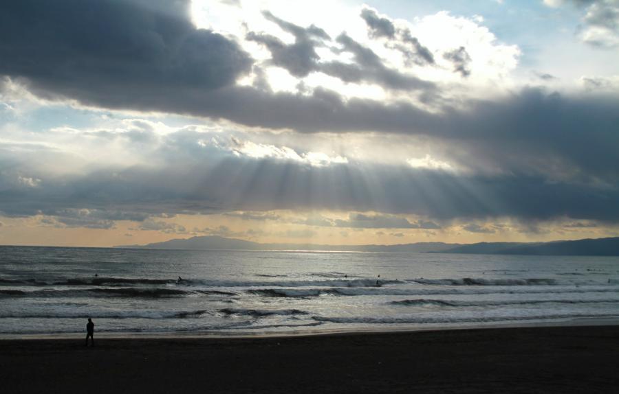 湘南は今日の午後は強風!…で散歩に出掛けた時はたいした風じゃあ~なかったのに西浜に渡った辺りから急に風が上がり、なんだか散歩の邪魔をされたみたいだ~![]()