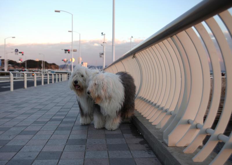 こんなに薄暗くなっての散歩は最近珍しいが、夕焼けに誘われ、しかも2ワンだと超”楽だし~(笑)昼間青果市場に釣れて行っただけなので……おまけの散歩です。