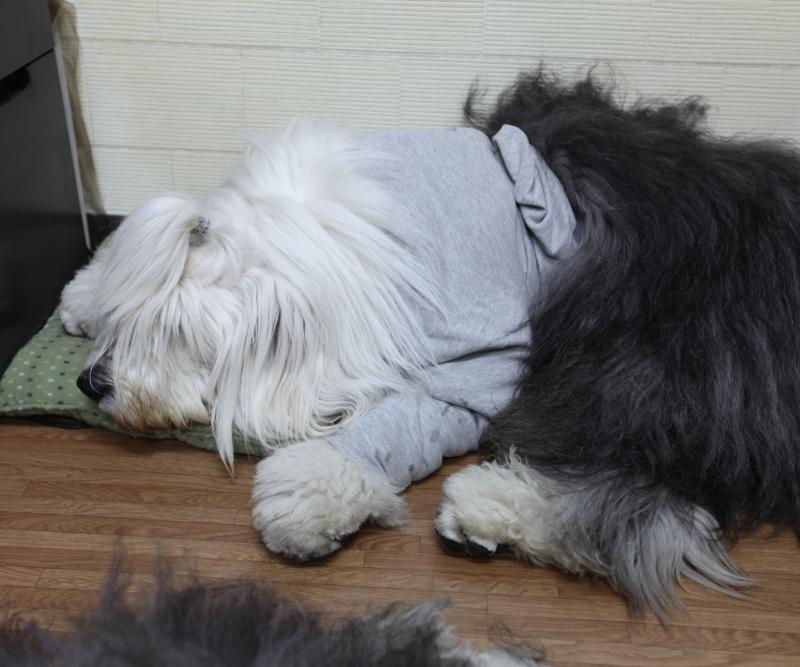 ari_1.gif・・・・・昨日書いた最作のホットスポットの舐め”舐め”の防御に今日は薄手で長袖のシャツを着させ…これでほぼ完璧だろう~♪  抗生剤も飲ませせているし、赤く毟られた皮膚にもハゲ予防の~(笑)粉のお薬も付けているし、後は最作自身が気にしなければ良いんだけどね!img_1003.jpgkirakira.gifただ、こういったシャツ等を着せたりすると毛玉がとても出来易く・・・ オールドって本当に厄介な犬種だねぇ~(まあ~毎日ブラッシングをしている方達にとっては、何でもない事なんだけど!・・・笑”)