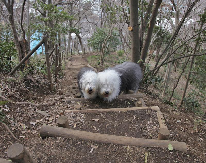 ・・上に来ると風がビュービューで直ぐ退散!~(笑)ここから更に上に……こりずに登り、来た道と違う道を降りては来たが、ここが又~かなりの急坂の階段で2ワン連れでも慎重に降りないとかなり危険な道で、1~2段降りるたびに 『待て!…とまれ!』 と、ずっと連呼の繰り返しで!~(爆)![]()
