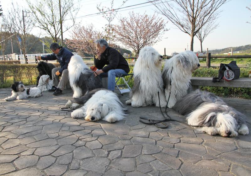 今朝は特に暖かい、早朝の散歩もとても楽で(人間は~笑”)~ワン達には辛い暑い日がきっともう直ぐにやってきちゃあうんだろぉ~~~! 親水公園も暖かくなってくると我々の散歩の時間帯にも段々人が増え、早朝でもだいぶ賑やかさが増す。 少し早めに着いたので陽が当たらぬ少し暗い中で我が家の4ワン~♪
