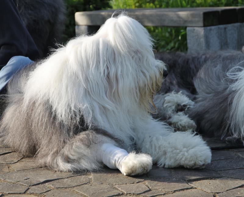 どうしたのかと?足を見ると…ゲゲ!右足が毛玉だらけで固まっている?痛かったのか?気になってずっと舐め続けていたのだろう~! ブラシとコームでフエルト状になったコートをかき分け、良く見ると血は全然出た様子は無いが深~く
