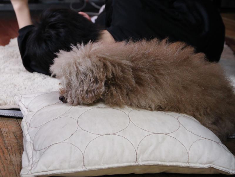 だが今朝はチョット変な事があった・・・普段それほど意識しない最作がやけにパティーに寄り添いたがり~? たまにシャンプーの後とかは勘違いする♂のワンは多いが、