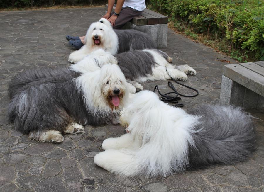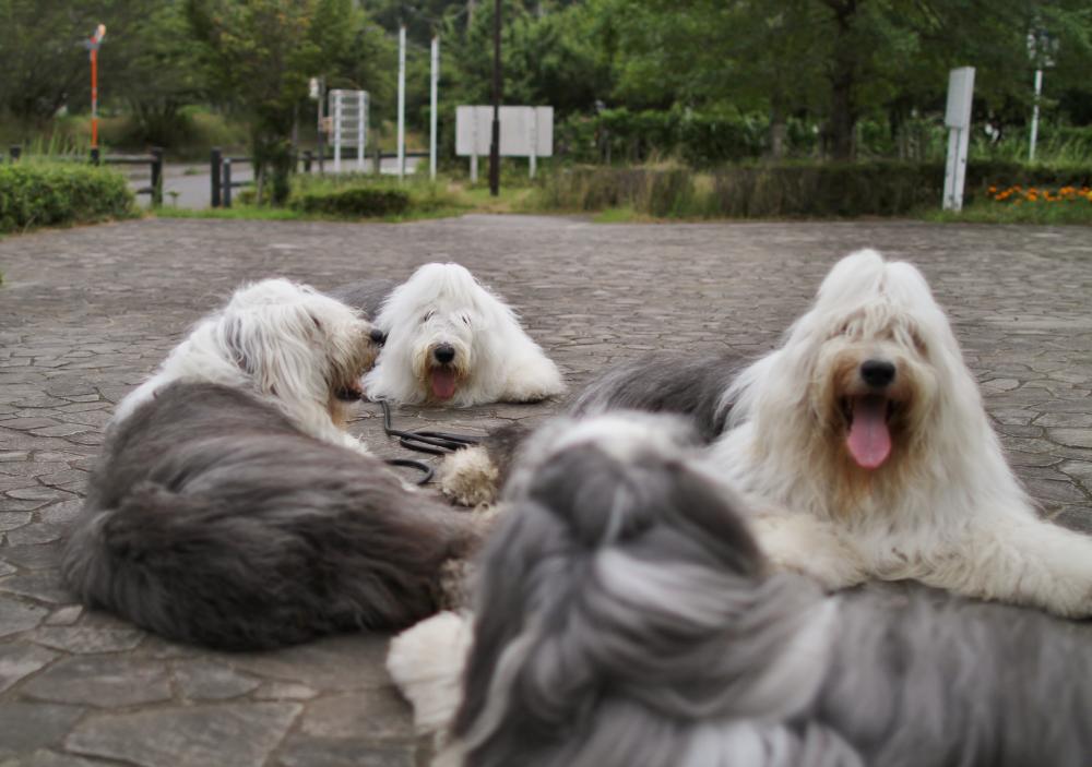 今朝も曇って割りと涼しかったのに早朝散歩の途中から風が止み、ムシムシと暑い!そのせいか?お年のせいか?実留紅も息が荒く・・・