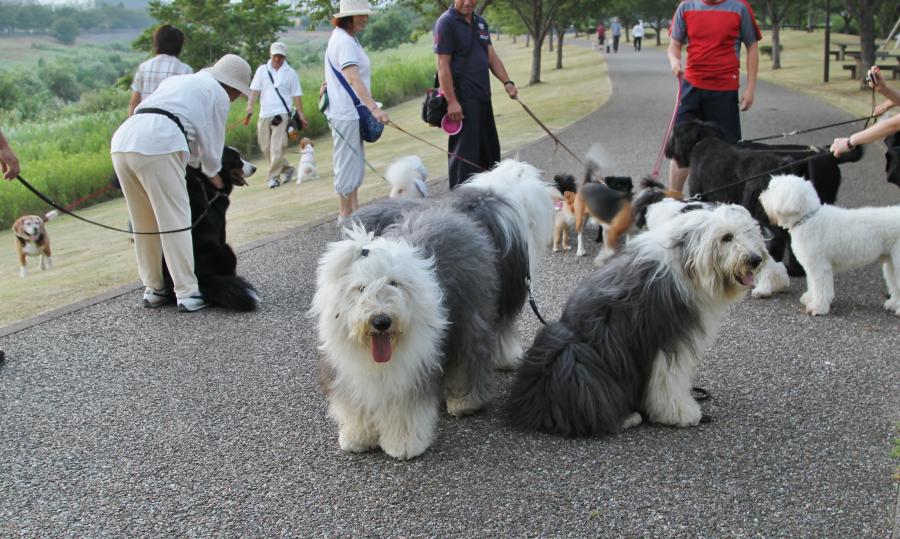 7時近くになると親水公園は待ちわびたワン達の散歩で一挙に賑やかに・・・みんな涼しくなるのを待っていたんだよねぇ~♪![]()