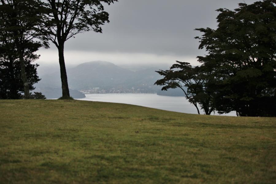到着して少し遊んだ後の雨では芦ノ湖の対岸は雲に覆われ~幻想的な風景で・・・・・・・