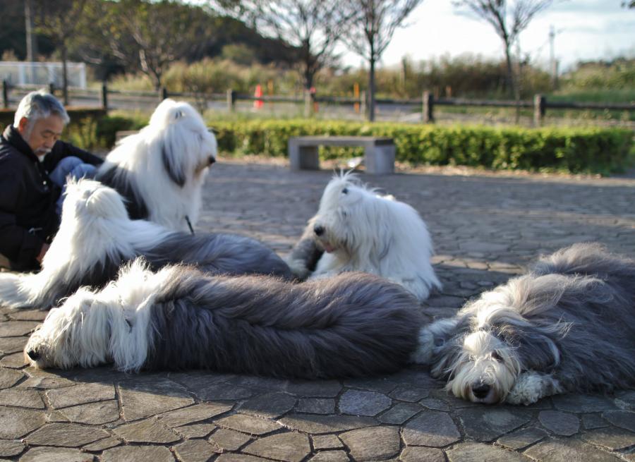 さて今朝もパティー家とオールド5ワンの散歩です。少し風があり人間には寒いくらいの陽気ですがワン達にとってはなかなか気持のいい温度なのでしょう。
