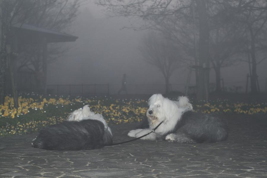 hiyo_shock1.gif・・・ 今朝は霧です! 物凄い霧で親水公園の対岸も霞んで見えワン達がびっしょりになるかと思っていましたが・・・・・img_0334.jpgimg_0337.jpg不思議な事に今朝の霧は全く濡れません~? 普通こんな霧の日はワン達のコートの表面はびっしょりと濡れ~その湿気でいや~な”毛玉が出来易くなり…… kaminari.gif霧の出た日の後では注意を欠かせないにですが・・・ 霧の粒子が極端に細かかったのかなぁ~?…それにしても不思議だなぁ~!img_0335.jpgimg_0340.jpgimg_0345.jpgari_1.gif…そんな超”濃い霧の中でもしっかりと休憩~(笑) 自然のミストが気持良さそうです~♪img_0338.jpgimg_0347.jpg  star.gif親水公園は川沿いに沿ってある公園で川の水の温度と冷たい外気の温度差から朝霧が発生する事が多いのですが……割りと暖かかった今朝の濡れない霧は~何なんだったんだろう~?
