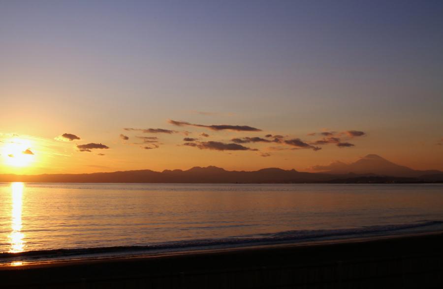 4時を過ぎると急に陽が落ち始め、辺り一面や雲までもサーモンピンクに染まり、静かな海とピンク色が穏やかで温かみのある感じででした。~♪![]()