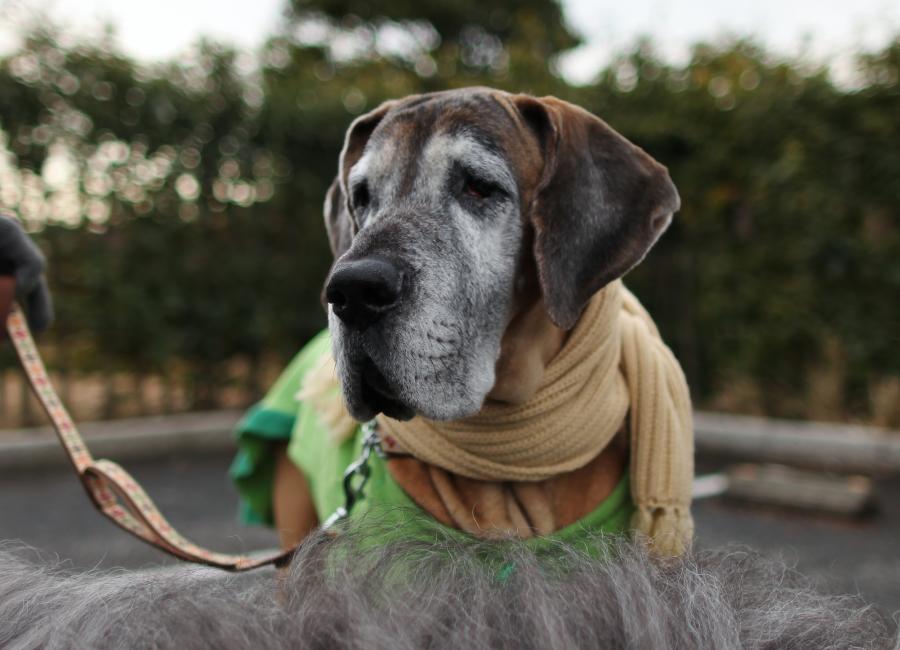 2度目の散歩ので出しに遭ったグレートデーンの『しらすちゃん』に一廻りしてから又遭ってお話をすると……しらすちゃんは8歳で実留紅と同じに癌に侵されていてそれでも元気に頑張っています。~