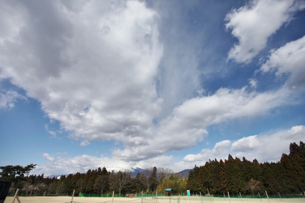 学生も春休みに入り御殿場への東名高速も車が多く、晴れの予報の昨日はどこもかなりの人出だったようです。 行きの車から見る富士山は雲が掛かり~晴れて風が吹くと富士山にあたった風の上昇気流から富士山が雲”製造器になっちゃうみたいです。~(笑)