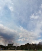 富士山の作り出す雲とその直ぐ横での~山焼きの煙とで尚更太陽が遮られ・・・しかも暫くするとその煙のススの大きい物では10cmの物がパラパラと~(笑)