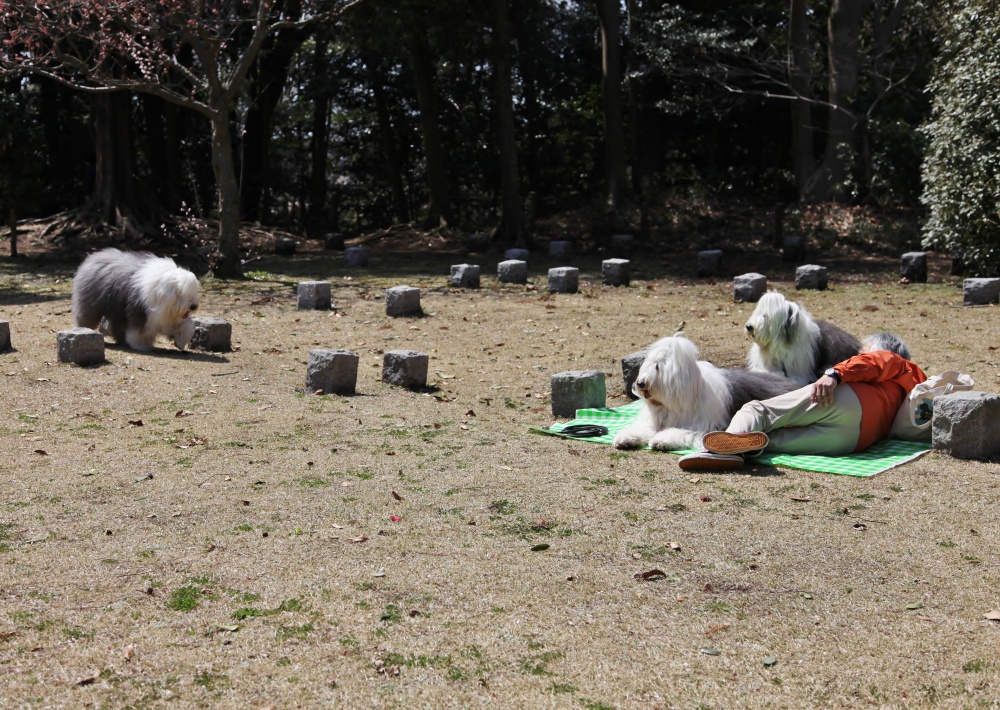 一昨日の日曜日は風の強さを避け、木々で風が避けられる大庭城跡公園に行きました。 パテイー家を誘い・・・・行く前に桃太郎と~