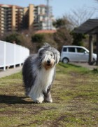近所の川沿いの歩道を歩き、坂道は少し酷な実留紅を近くの神社で遊ばせてからの・・・3回目の散歩です~(汗)