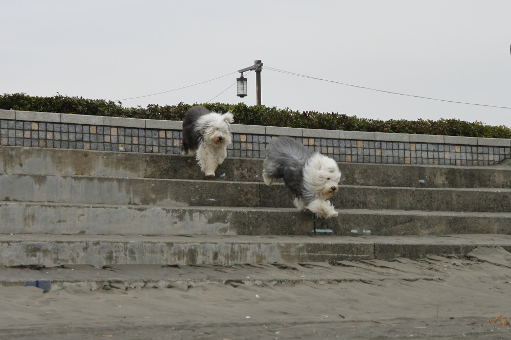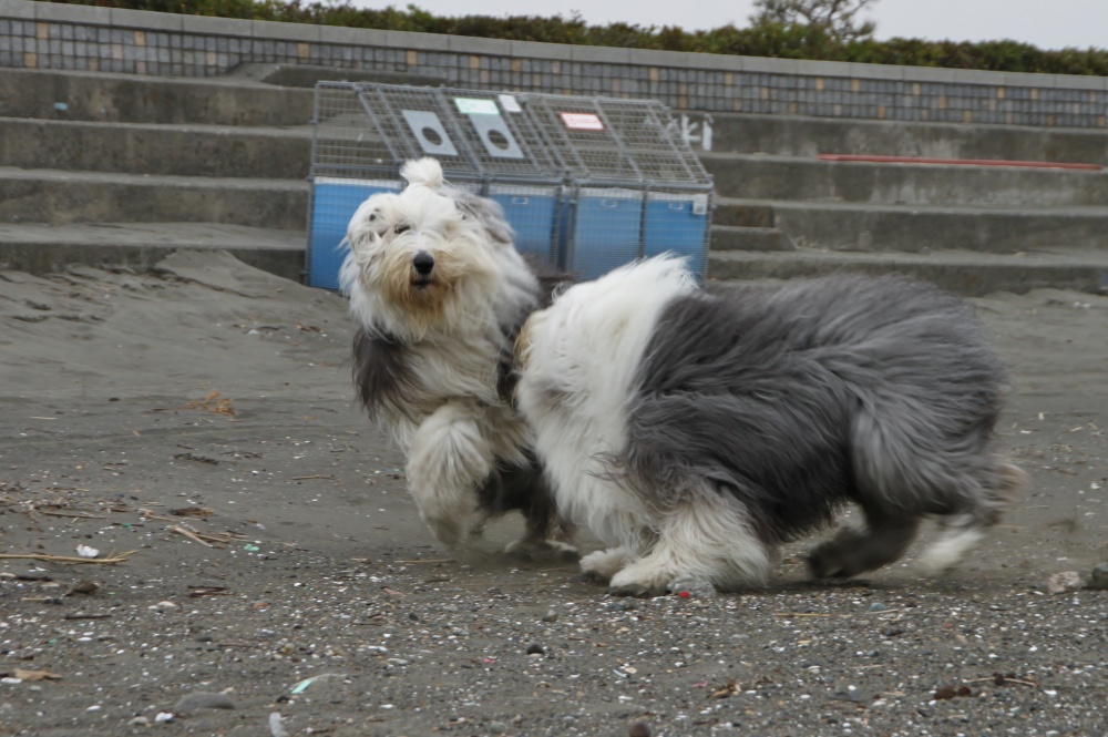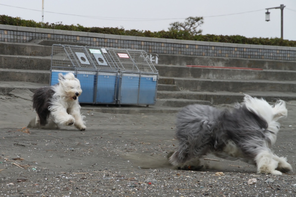 午後の散歩で誰も居無い東浜で思いっきり走らせ~(・・・と言うよりバトルです。~笑”)