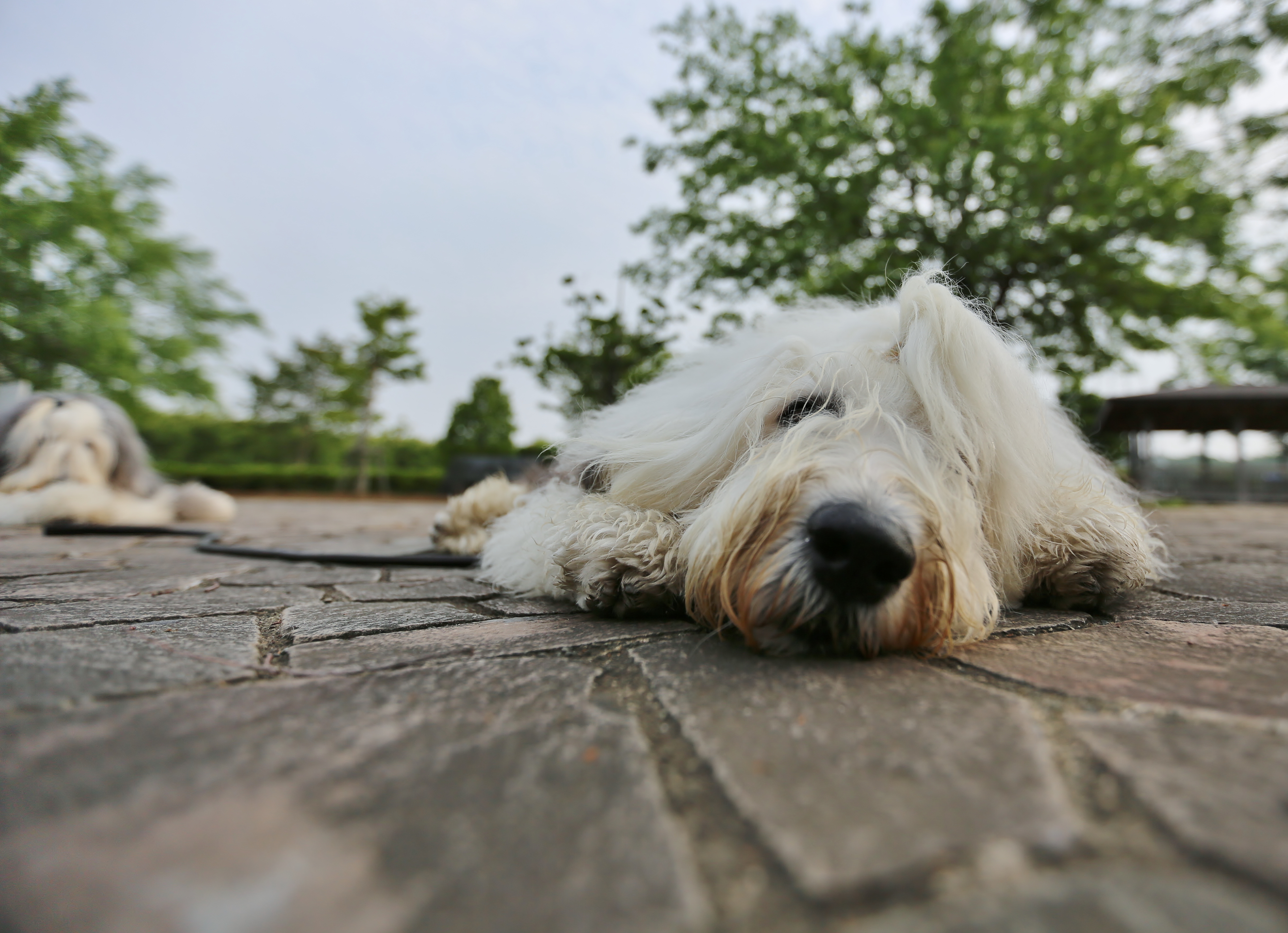 食事も摂れなく、水が飲みたくても駄目!・・・・・気分転換に今朝は抱っこされて親水公園に来ました。勿論”一緒には歩きませんでしたが我家が休憩場所に戻るとパティーも来ていました~♪