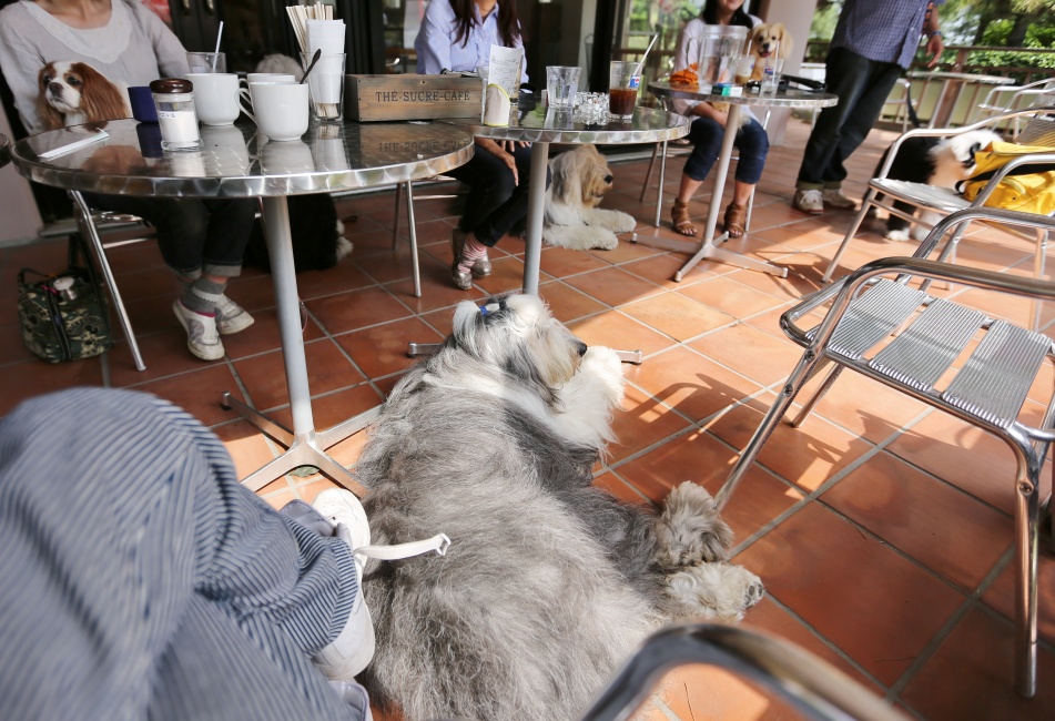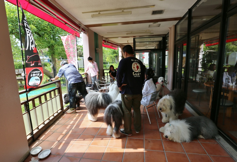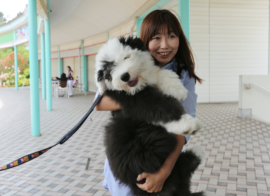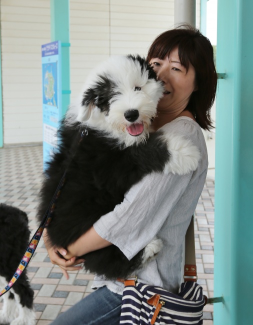 今だけしか味わえないこのパピーの感触は最高です! お昼も過ぎたので昼食をとりにミート牧場でパセリ家を待つことに~  途中でまずは集合写真です。 予報が悪かったせいでしょう~八景島シーパラダイスは以外に空いていて・・・まさかこんなに暑くなるとは~? ……相変わらず管理の良いパセ家!パセリは病気でだいぶコートが抜けてしまいましたが、それでも我家の貧毛連中よりすっと綺麗で~(汗)本当に感心させられます!ミート牧場のベランダ席は貸切!~♪以前はこの前にあったちっちゃなドックランの今はバーベキュー場になってしまいましたが・・・昨日はたまたまお客さんが誰も居無い状態で…勝手にドックラン?~(笑)