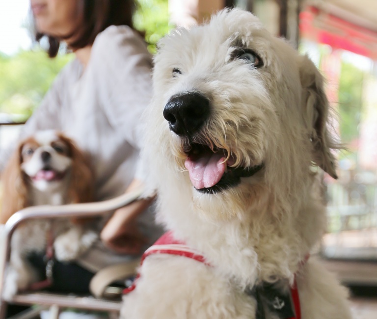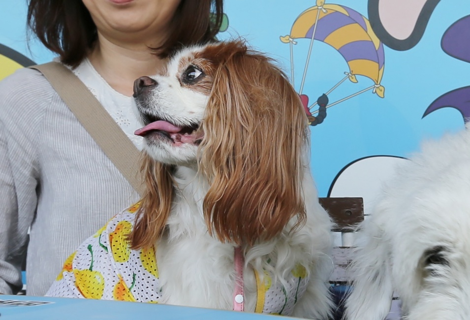雨の予報だった昨日の朝は、少し遅くおきたら道路も乾いていて?…これならもしかしたら散歩も行けるかな? …と、思っていたら朝に変わった予報でも9時ごろは雨!、しかし降らずに徐々に明るくなる空~空~♪  それじゃぁ~”遊びにいかなくちゃぁ~と!急遽…八景島に集合~♪足柄に行く予定が急な天候の変化で昼近くになってしまいましたが…… 予定より少し遅れてしまった我家!フットワークの良い連家・パピパピ~オールドのトア家も我家より先に着いていました~(汗)島に渡り急に暑くなった日差しを避け日陰で~まず休憩です!~(笑)    抗癌剤治療がやっと終了した蓮チン! ……急に伸びたコートにビックリです~♪