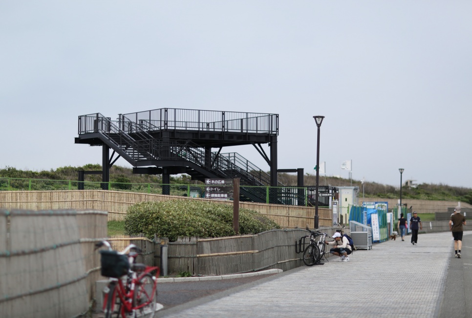 サーフビレッジの公園も5時近くになると遊んでいた子供達もほとんど帰り閑散としています・・・・・・  この公園に来る直ぐ手前に以前書いた~津波避難用タワーがほとんど出来上がっていましたが……こんな低くて小さな物で?はたして~いざ!と言う時に役に立つのでしょうか~?