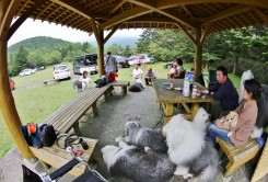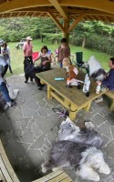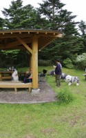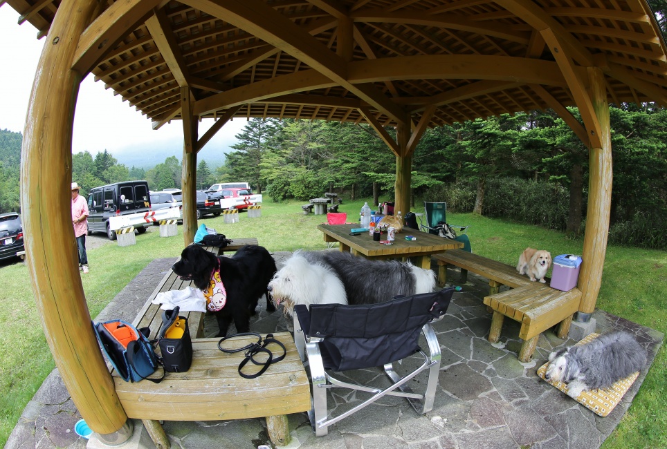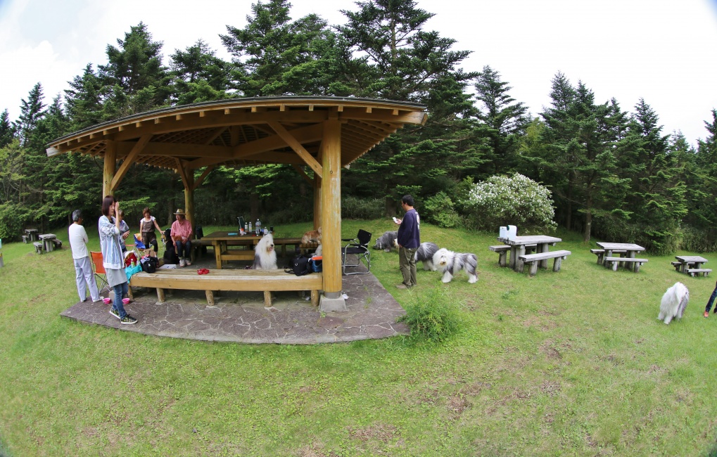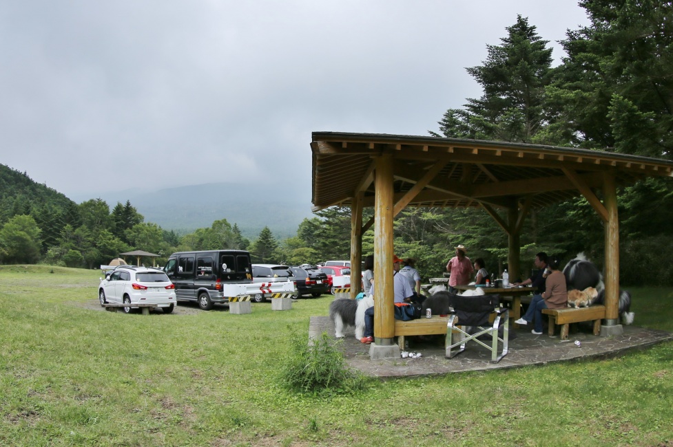 途中でパセ家からの電話で奥の東屋を陣取ってくれる手配になっていたので~広場に車では入れるなら入れちゃおう~と東屋の直ぐ前に車止めることが出来ました~♪