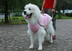 公園に車ではいる手前でチラッと白い大きなワンが見えた気がしましたが・・・ 何のワンなんだろうと思いながら…いつもどおりのコースを歩き、折り返し地点の手前の下り坂に差し掛かると…実留紅が…『歩くの今日は嫌!』・・・