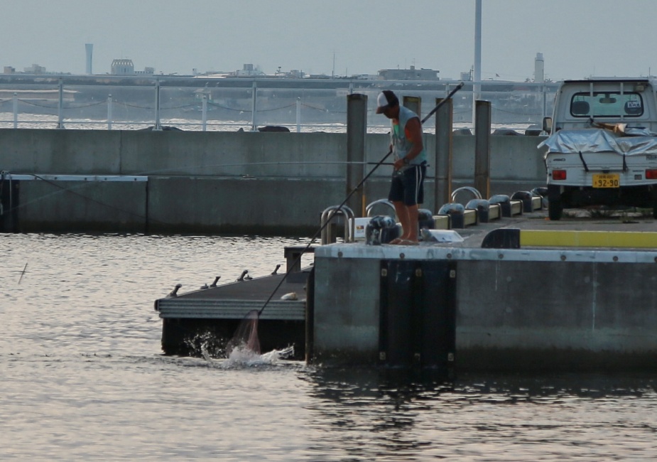 この堤防はたまに石鯛も連れるのです・・・今日は目の前の堤防で釣りをしていた人に丁度”大物をかかり・・・おお釣れたかなぁ~?…と見ていると大きな魚を釣り上げ~!